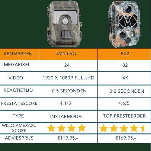 Momenteel verkoopt WildcameraXL 2 typen wildcamera's:
