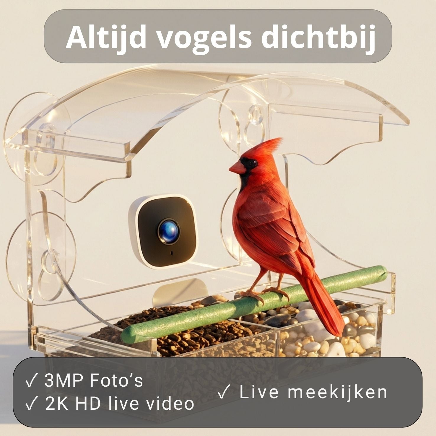 Beleef vogels op slechts enkele centimeters afstand van je raam.