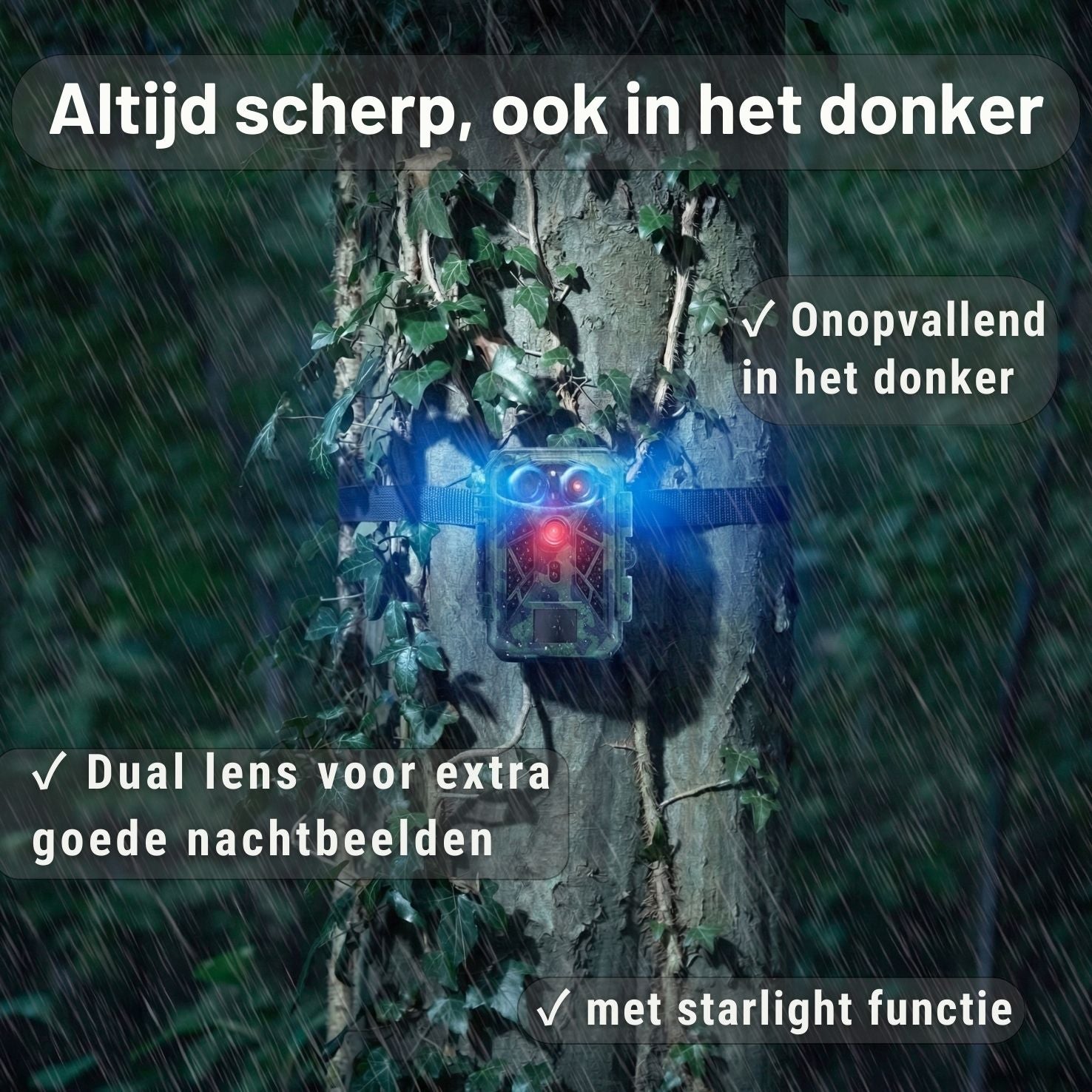 De camera start binnen 0.2 seconden zodat het dier altijd in beeld is.